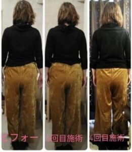 一回目の施術後は、肩が広がりお腹が凹み反り腰も改善しました。